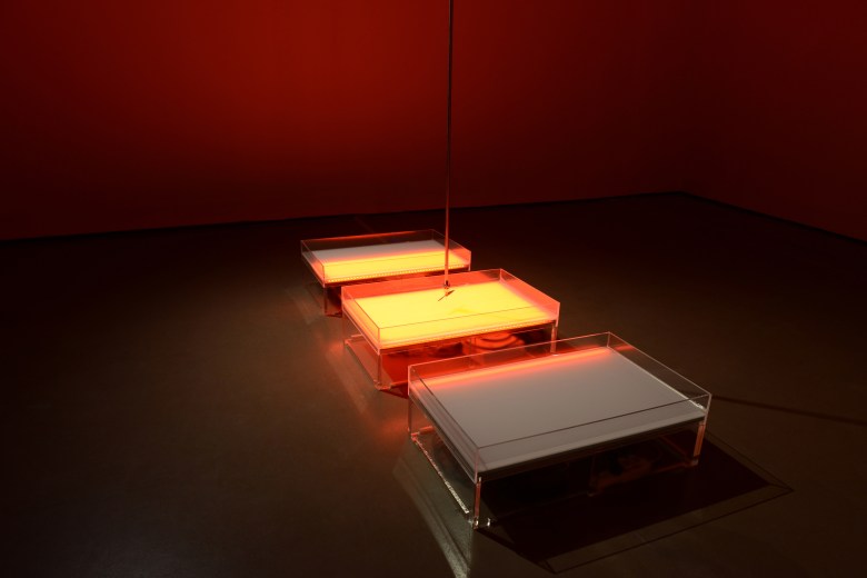 The author uses water as the “interface” to reception and conveys information from the propeller and the light, resulting in different ripples and visual effects that sometimes confusing audience perception. Sensory Overload occurs when one or more of the body’s senses experience over-stimulation from the environment. This work calls on the viewer to reconsider our relationship with our state of living, how to face that there are more and more environmental elements that impact an individual.