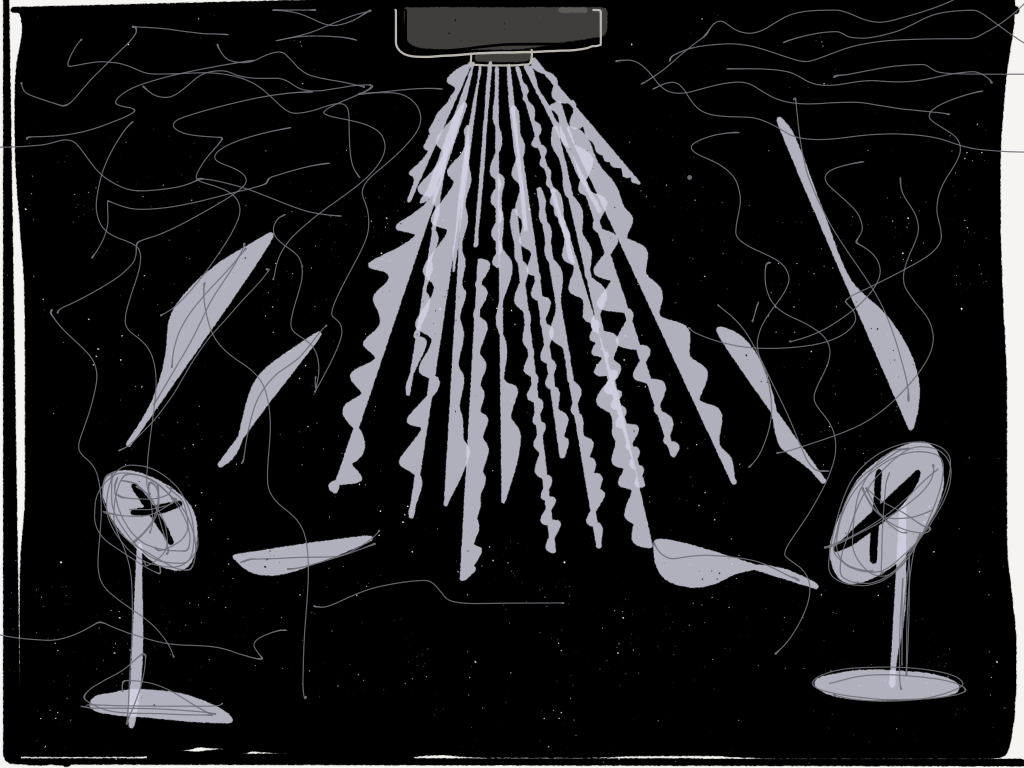 My master’s graduation work, I explored how light interacts with other natural elements – wind, and water around the topic of sensory overload. When the work was exhibited, one of the audience said he felt the work (or say this machine) got its own emotions and personalities, sometimes it shows angry, sometimes it shows peaceful. I did not think the work in that way while I was making it, but it’s kind of interesting to hear. What I was intention to do is to explore the different aspects of the “machine”. When it is almost broken; when the screen got blue; when they are overloaded. (It’s actually quite similar though. and that makes sense that we all know it is around a kind of the same thing, but from a different perspective, and using a different metaphor to understand and make sense for oneself). In this work, the relationship between the audience and the work itself is still through viewing. Standing around the work, to see how the work itself to perform.
