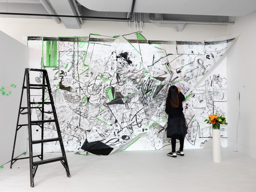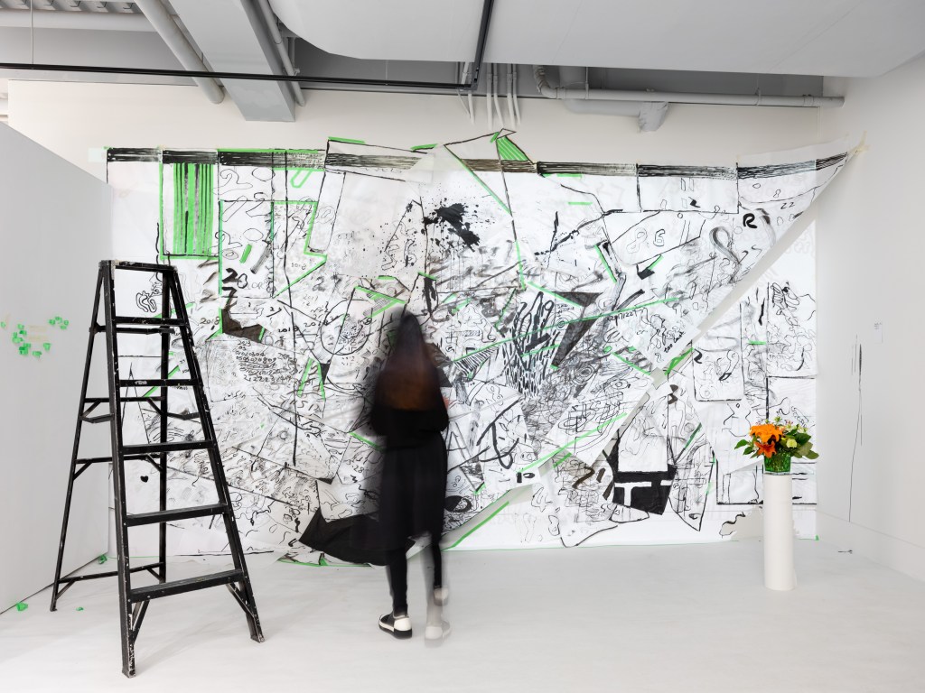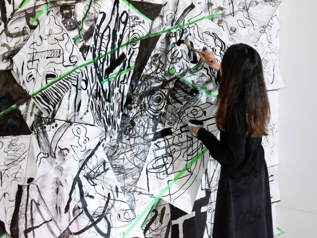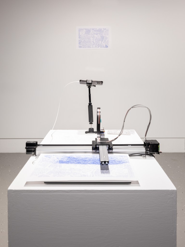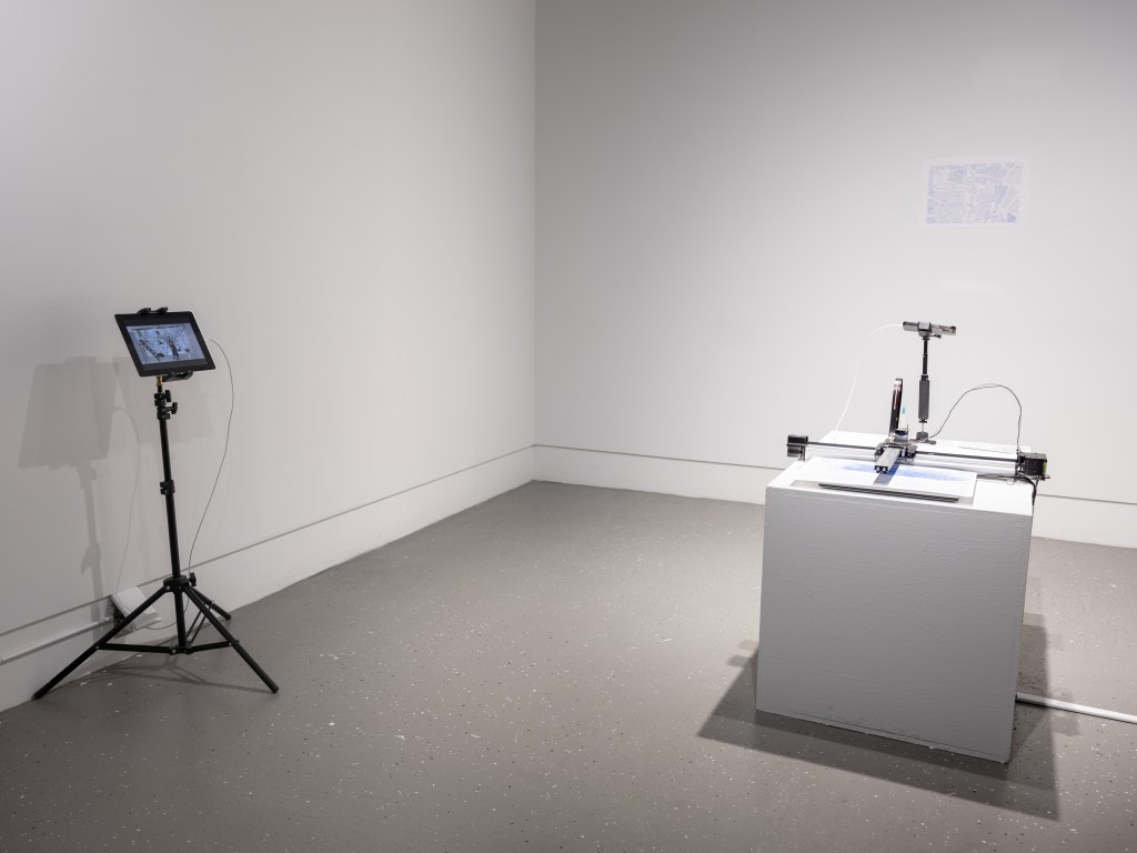 Flowing to Unsettle is the final phase of a PhD research-creation project at UBC Okanagan initiated in 2020. In the previous phases Yujie has performed in a total of 72 livestreams, repeatedly implementing the same improvisation prompt ‘fill a canvas from empty to full’ with variables like duration, materials, platforms, and scales. For the first time ever, through her six-week-long performance at the Alternator, Yujie will use the exhibition space as her canvas, performing every day, collaborating with a variety of technologies and inviting participants to engage with their own temporal perceptions in an embodied experience where they are encouraged to slow down, reflect, and connect with the environment. The process of being – including thinking, wandering, playing, making, failing, problem-solving, and reflecting – forms the ‘whole’ of the work. The work itself is in the process. The performance will be broadcasted and recorded. By performing extensively for six weeks, she is also questioning what defines the boundaries between art time, machine time and life time and how they intertwine with each other.