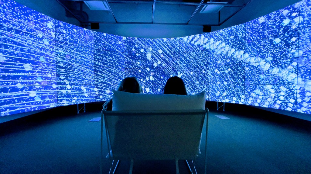All the Stars We Cannot See is an immersive installation that situates participants within a virtual sky activated by 25,500+ satellites orbiting Earth. Smith & Gao are working to render visible the global impact of satellite density.